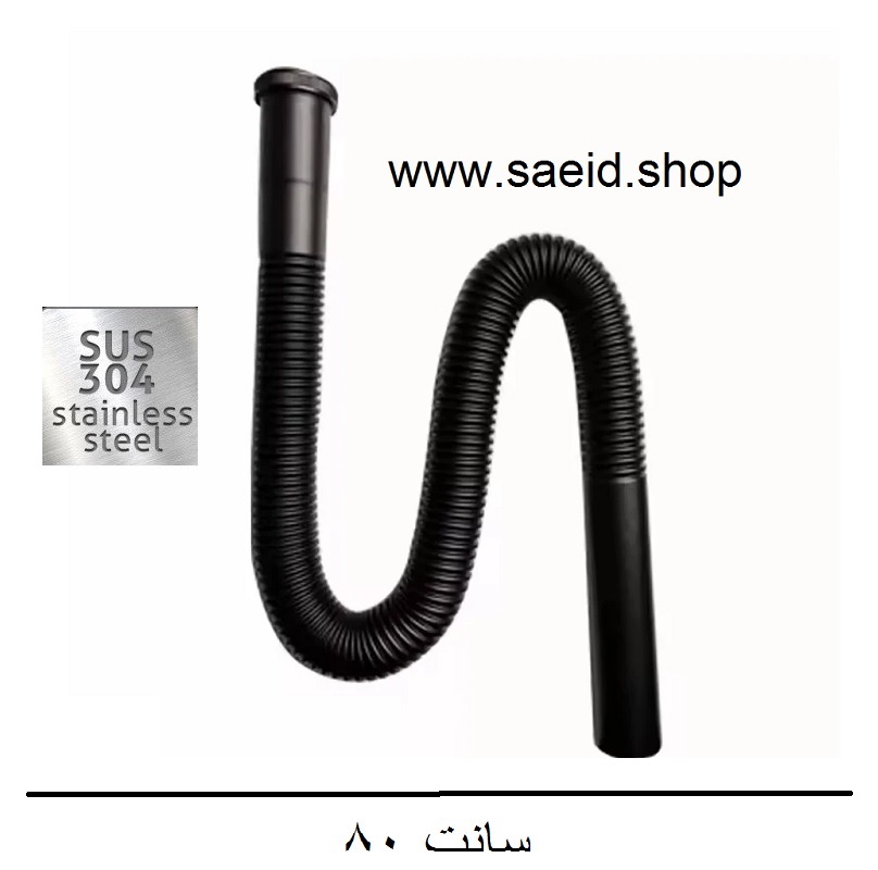 سیفون خرطومی مشکی استیل 304 ضد زنگ انعطاف پذیر روشویی و سینک