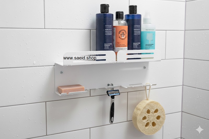 قفسه حمام جا شامپو صابون لیف شلف طبقه استند ضد زنگ فلزی سفید